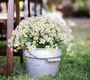 - Spring: soft pinks, whites, greenery